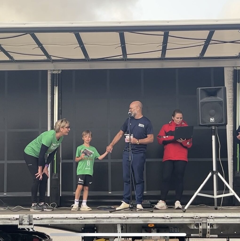 Vores t-shirts i år var i håbets farve. Og vi var virkelig synlige i mængden – for vi var rigtig mange! Faktisk så mange, at vi igen i år løb med præmien for største hold.